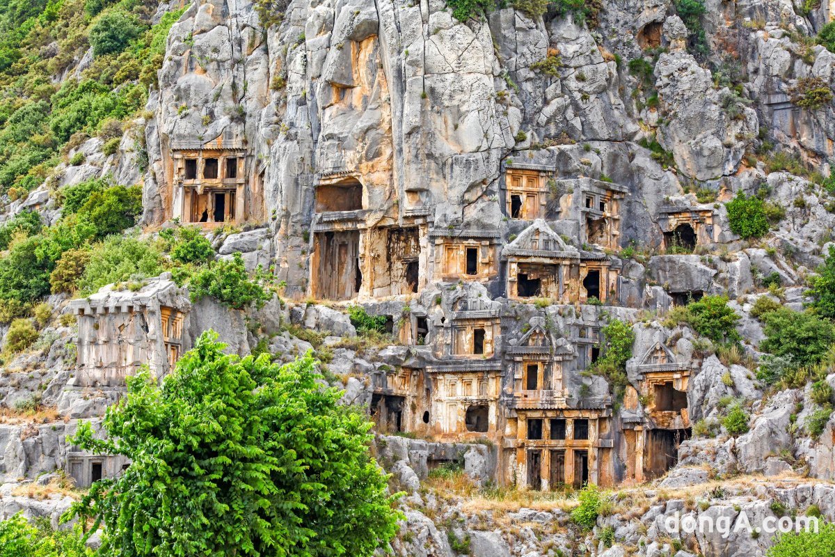 카쉬에서 약 40분 거리의 데므레는 산타클로스의 모델로 알려진 성 니콜라오스가 살던 곳이다. 미라(Mira) 고대 도시에는 리키아 문명의 원형극장과 절벽 무덤이 보존되어 있으며, 성 니콜라스 교회는 역사적 가치를 더한다. 데므레 근처 치랄리와 올림푸스 해변은 바다거북 산란지로 보호받는 자연 명소이다. 이 지역은 조용한 휴식과 사색을 원하는 여행자에게 추천된다.
