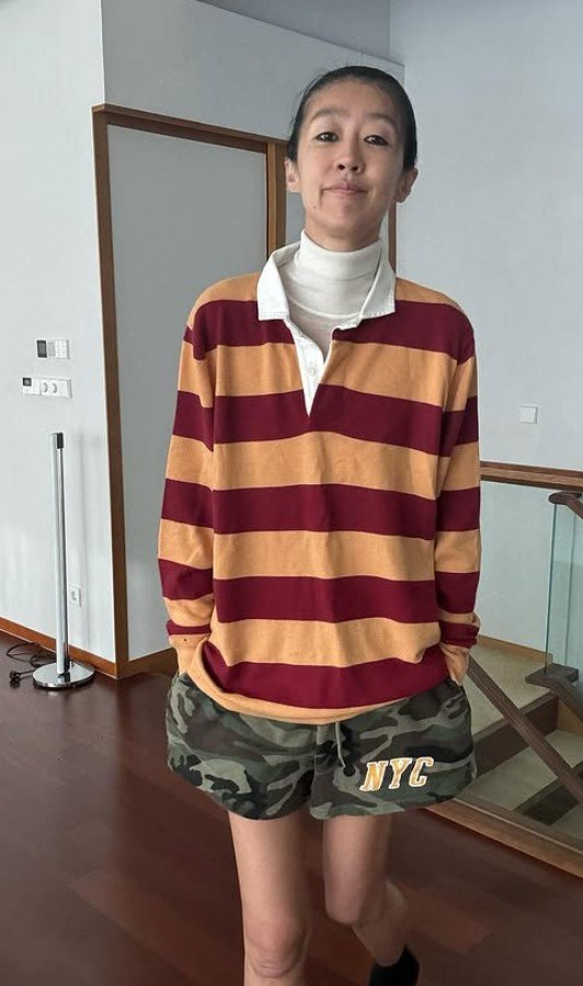 홍진경은 24일 자신의 소셜미디어에 여러 장의 사진을 게재했다. 사진 속 그는 줄무늬 상의에 흰색 폴라 티셔츠를 겹쳐 입었고, 아랫차림은 군복 무늬 반바지로 편안하면서도 자유로운 분위기를 연출했다.