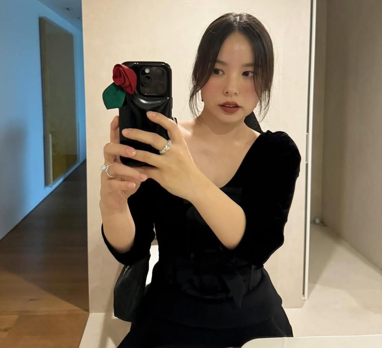 공개된 사진 속 민효린은 블랙 벨벳 드레스를 입고 단정한 헤어스타일을 한 채 카메라를 바라보고 있다. 결혼 이후에도 변함없는 미모와 여유로운 미소가 눈길을 끈다.