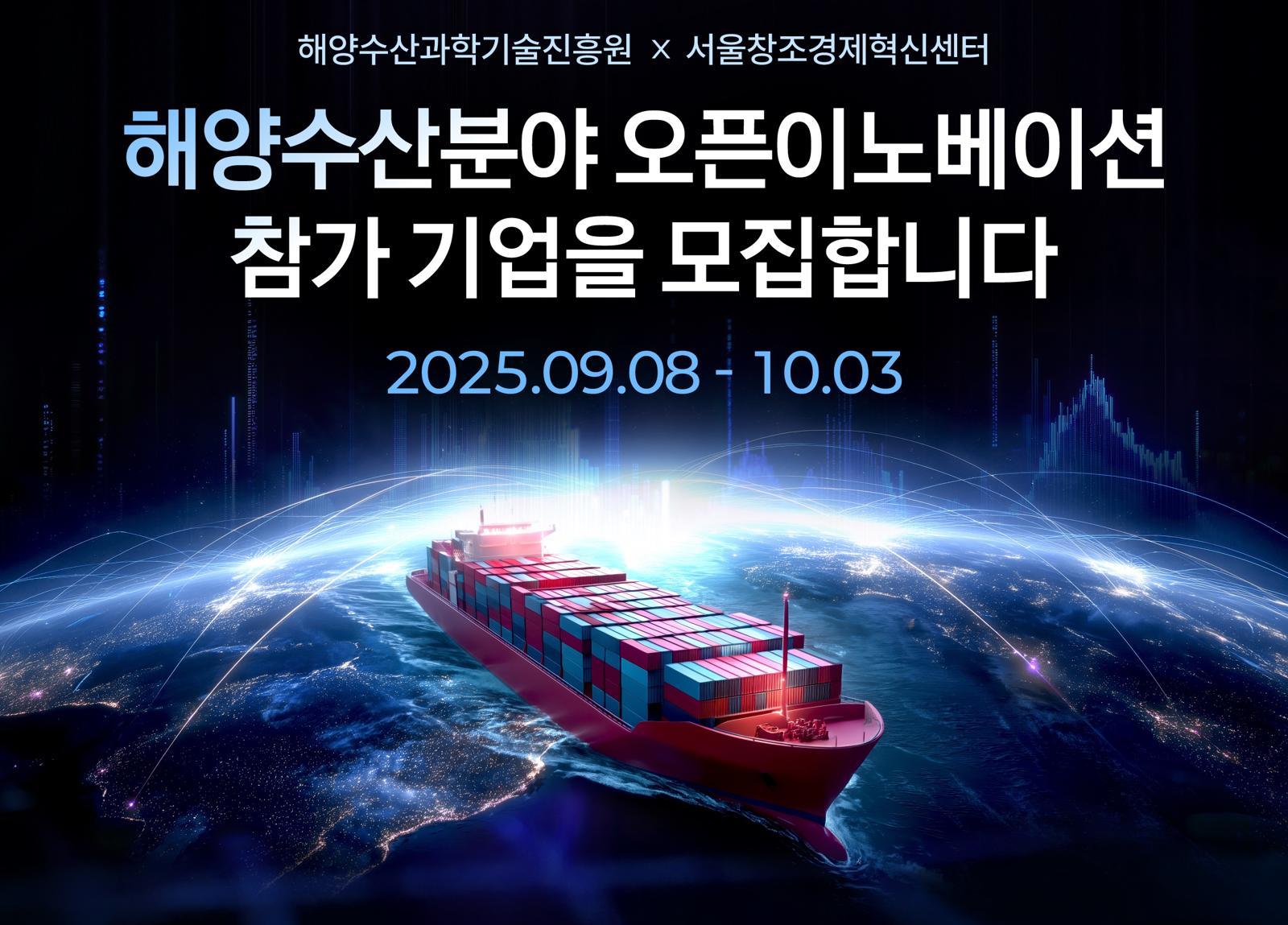 서울창조경제혁신센터는 해양수산과학기술진흥원과 공동으로 ‘해양수산분야 오픈이노베이션’ 프로그램을 새로 마련하고 9월 8일부터 10월 3일까지 참여기업을 모집한다고 23일 밝혔다.