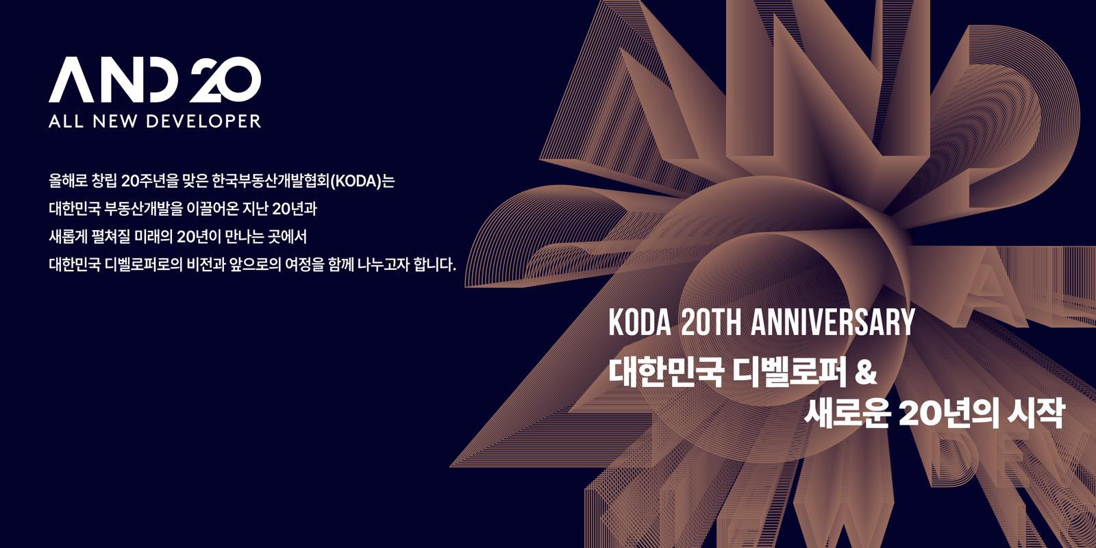 한국부동산개발협회(KODA, 회장 김승배)는 창립 20주년을 맞아 기념 행사의 명칭을 ‘A.N.D 20’으로 확정하고 본격적인 준비에 들어갔다고 23일 밝혔다.