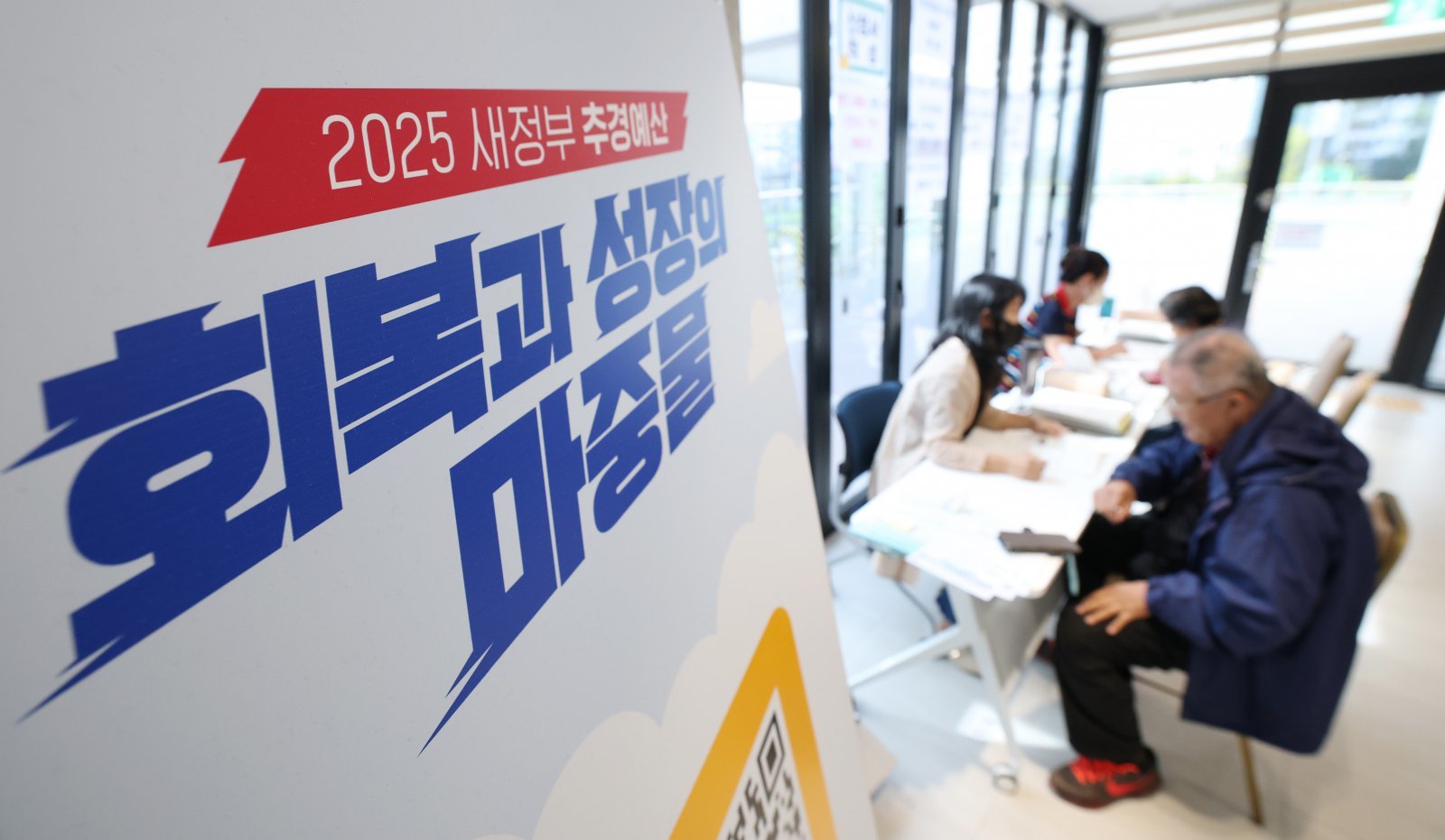 전 국민의 90%에게 10만원씩 지급하는 ‘민생회복 소비쿠폰’의 2차 신청 첫날인 22일 경기 수원시 팔달구 고등동행정복지센터에서 시민들이 소비쿠폰 신청을 하고 있다. 2025.9.22 뉴스1