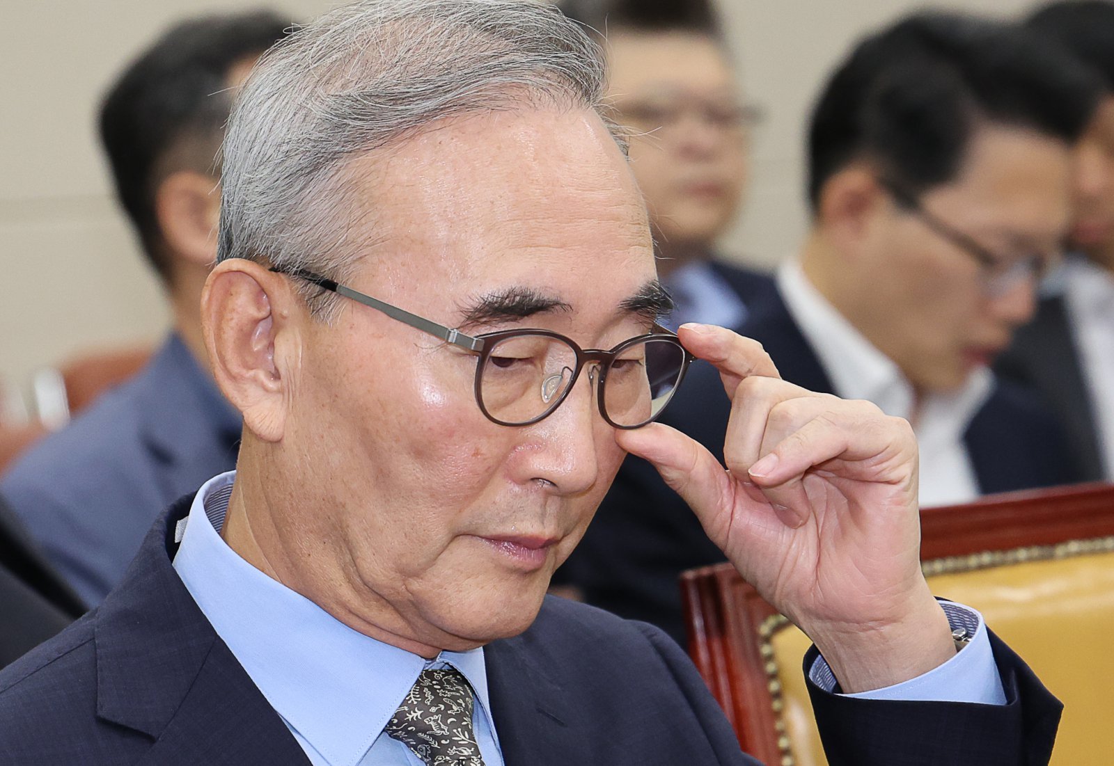 김영섭 KT 대표이사가 24일 오전 서울 여의도 국회 과학기술정보방송통신위원회 전체회의에서 열린 대규모 해킹사고(통신·금융) 관련 청문회에서 물을 마시고 있다. 2025.09.24. [서울=뉴시스]
