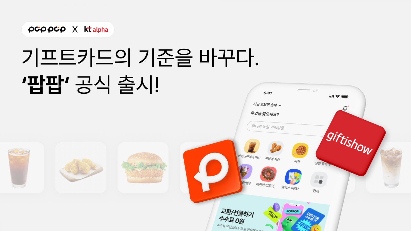 팝팝은 KT알파 기프티쇼와의 전략적 제휴를 통해 서비스 안정성과 상품 경쟁력을 강화했다. 양 사의 협업으로 소비자는 33개 인기 브랜드의 1,700여 종 기프트카드를 팝팝에서 만나볼 수 있는 ‘기프트카드 마켓’을 경험할 수 있다.