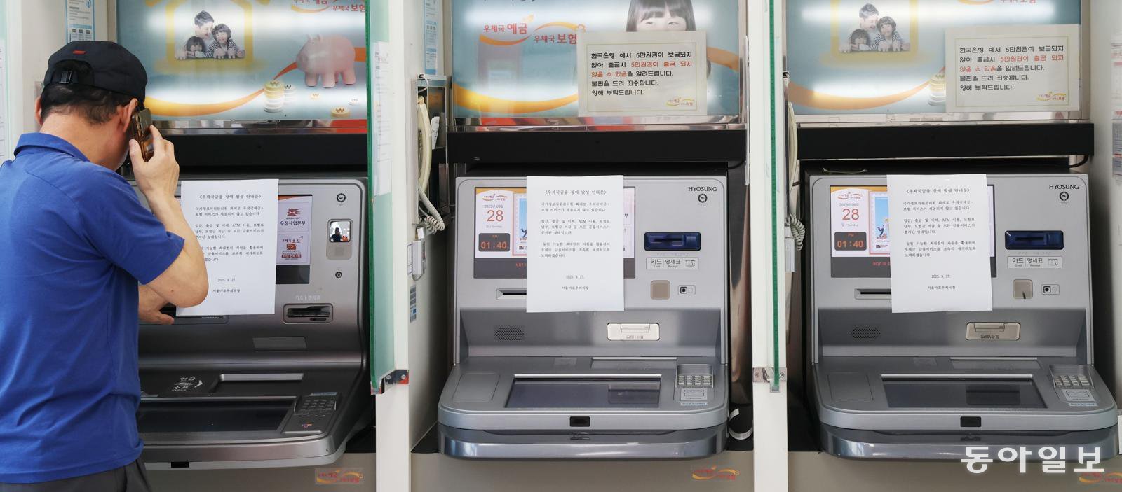 경기 고양시에 사는 이모 씨(37)는 27일 집 근처의 음식점에 외식을 하러 갔다가 주거래 은행인 우체국의 체크카드 사용이 중지돼 30분간 곤욕을 치렀다. A 씨는 “인터넷 뱅킹도 안 되고 카드 결제도 안 돼 결국 집에 있는 가족을 불러 계산을 해야 했다”고 말했다.