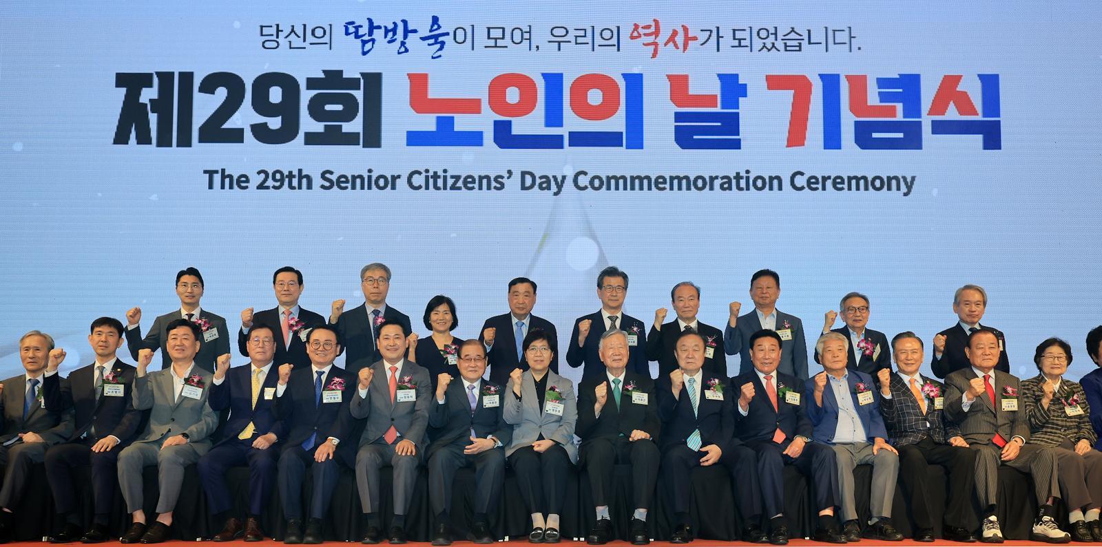 이중근 대한노인회 회장 겸 부영그룹 회장은 이날 인사말을 통해 “어르신들이 흘리신 땀방울과 희생이 오늘의 풍요로운 대한민국의 역사를 일궈냈다”고 강조했다. 이 회장은 지난해 10월 대한노인회 회장으로 취임한 이후 △노인 연령 상향 조정 △집에서 임종할 수 있는 ‘재가 임종제도’ 추진 △인구부 신설 등을 제안했다.