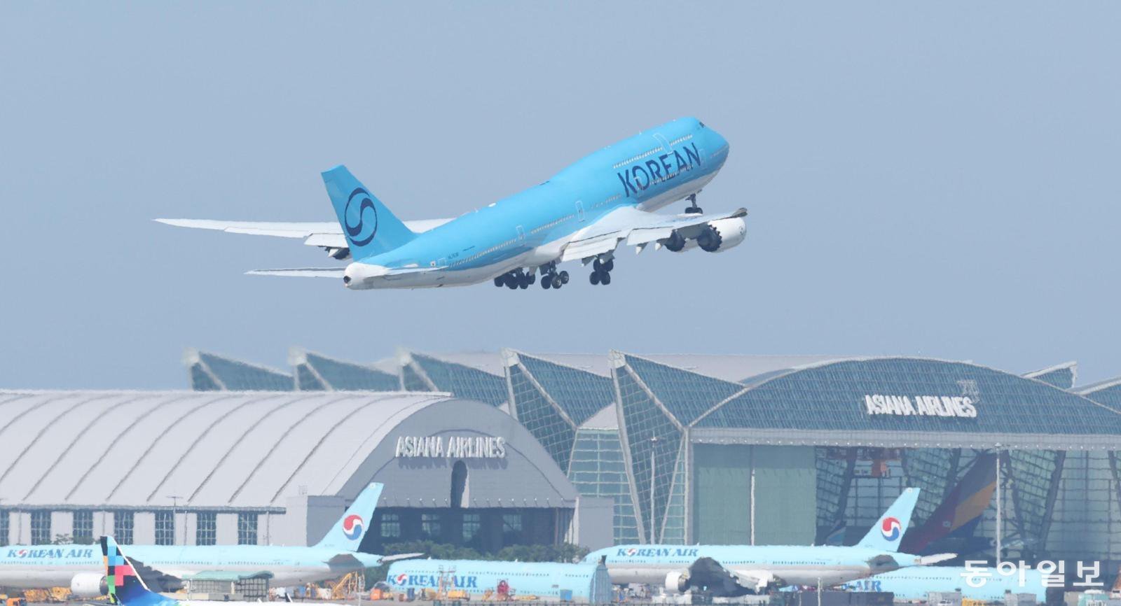 인천국제공항에서 이륙 중인 대한항공 여객기.