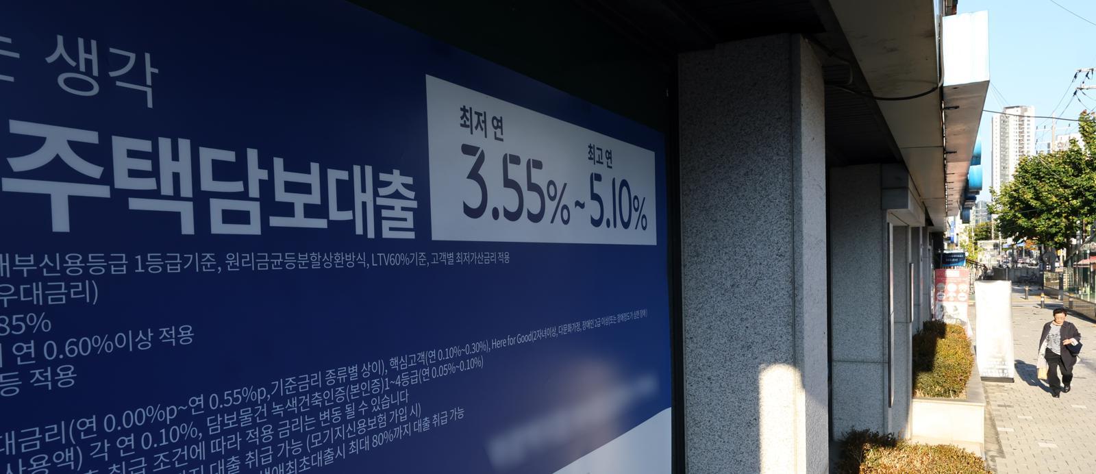 연말을 앞두고 은행들이 가계대출 조이기에 나서면서 대출 한파가 본격화하고 있다. 주택담보대출(주담대) 금리 오름세까지 이어지고 있어 연말 은행에서 돈 빌리기가 쉽지 않을 전망이다. 4대 은행의 금융채 5년 기준 고정형 주담대 금리는 연 3.93~6.06%로 이달 초 연 3.68~5.83% 대비 0.23~0.25%p 가량 뛰었다. 사진은 16일 서울 한 은행에 붙은 주담대 관련 안내문의 보습. 2025.11.16 [서울=뉴시스]