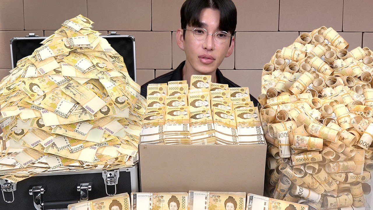영상 속 보겸 앞에는 산더미처럼 쌓인 현금 5만원권 묶음이 놓여 있었다. 함께 공개한 계좌 사진에는 2억원에 육박하는 거금이 찍혀 있었다.