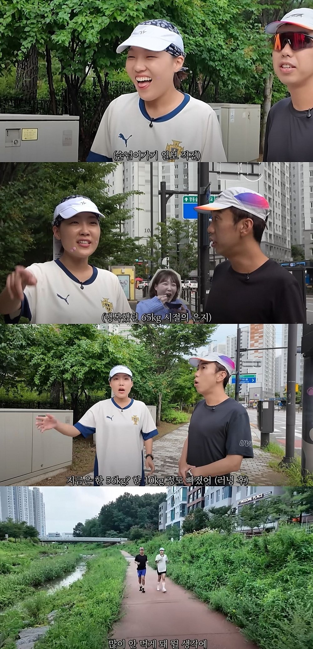 이은지는 “나도 원래 한창 먹을 때 65㎏였는데 지금 56㎏다. 러닝하면서 빠졌다”고 했다.