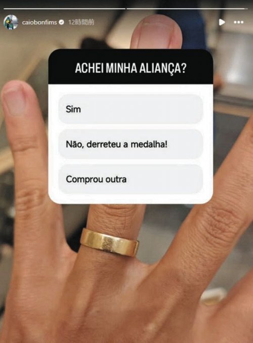 자신의 SNS를 통해 결혼 반지를 찾았다며 공개한 사진. (출처=인스타그램 @caiobonfims 캡처)경기 후 인터뷰에서 그는 “결혼반지를 잃어버렸다”고 털어놨다. 이 반지는 본핌의 부모가 준 것이다. 부모는 결혼 30주년까지 착용했던 여섯 개의 금반지를 녹여 하나로 만든 뒤 아들의 결혼 반지로 선물했다.