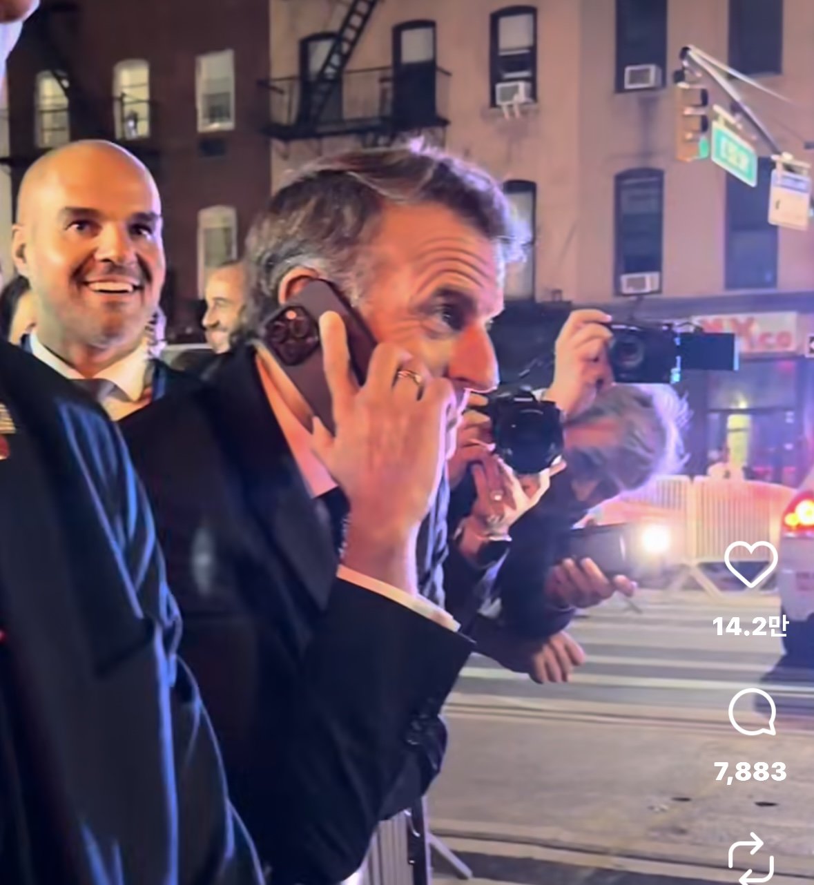 프랑스 매체 브뤼(Brut)가 소셜네트워크서비스(SNS)에 공개한 영상에는 마크롱 대통령이 맨해튼 거리에 잠시 고립된 모습이 담겼다.