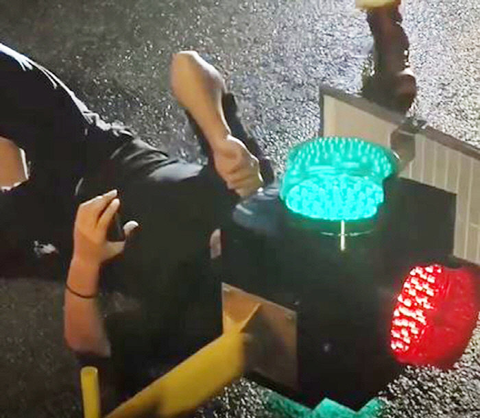 지난달 24일 일어난 이 사고 장면은 동영상 플랫폼 틱톡 등에 공유되며 화제가 됐다. 전동 스쿠터를 타던 남성이 임시 설치된 신호등 기둥을 들이받았고, 충격으로 신호등이 넘어지면서 헬멧을 쓰지 않은 그의 머리가 신호등 박스의 램프 구멍 안으로 들어가 버린 것이다.