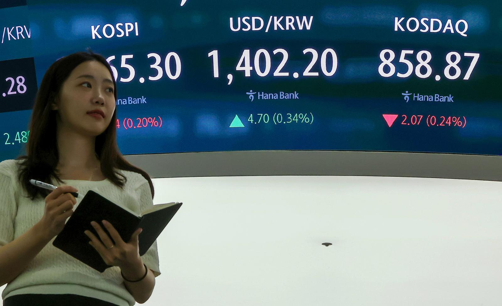 25일 오전 서울 중구 하나은행 딜링룸 전광판에 개장 시황이 나오고 있다. 이날 코스닥은 전 거래일보다 2.07포인트(0.24%) 떨어진 858.87에 거래되고 있다. 서울외환시장에서 달러·원 환율은 전일보다 4.70원 오른 1402.20원에 거래되고 있다. 2025.9.25. 뉴스1