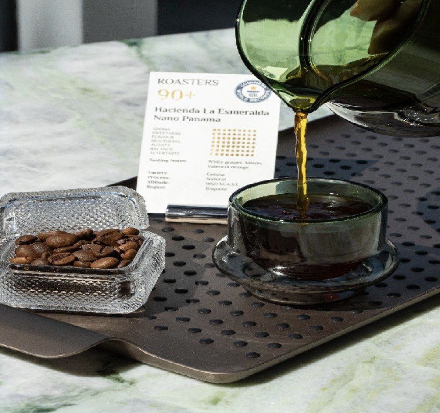 해당 커피는 파나마 ‘아시엔다 라 에스메랄다’ 농장에서 재배된 게이샤 원두를 사용했다. 이는 세계에서 가장 희귀하고 고급스러운 원두 중 하나로 꼽힌다.
