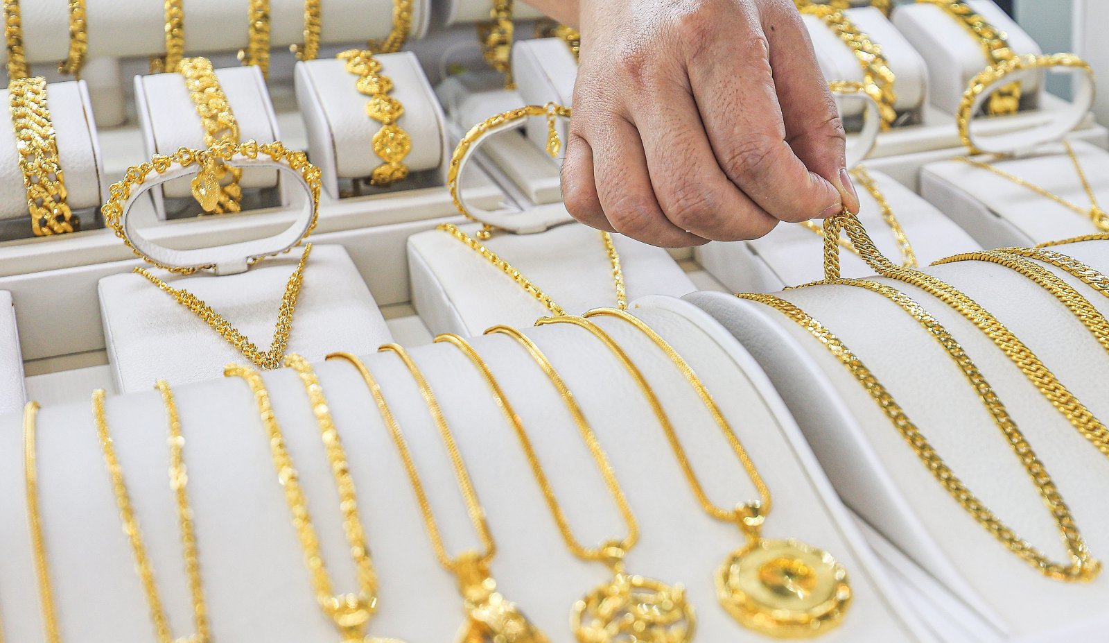30일 서울 종로구 한국금거래소에서 직원이 금 제품을 정리하고 있다. 2025.9.30/뉴스1