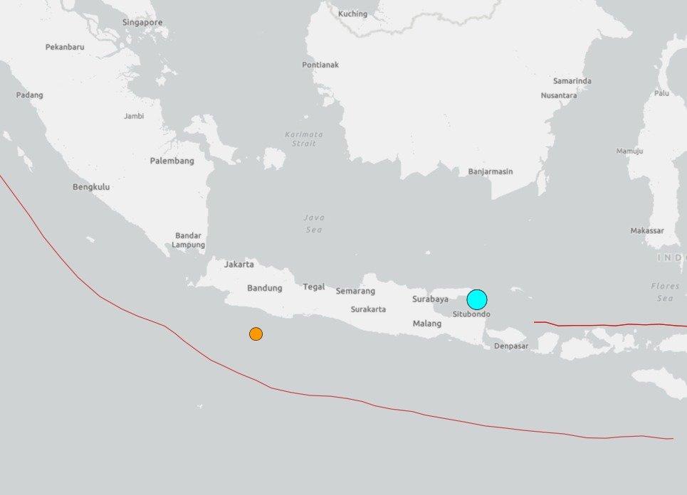 AFP에 따르면 미국 지질조사국(USGS)은 이날 오후 11시 49분쯤 자바섬에서 지진이 났다고 전했다. 진앙은 인도네시아 제2의 도시인 수라바야에서 동쪽으로 약 156㎞, 깊이는 13.9㎞다.