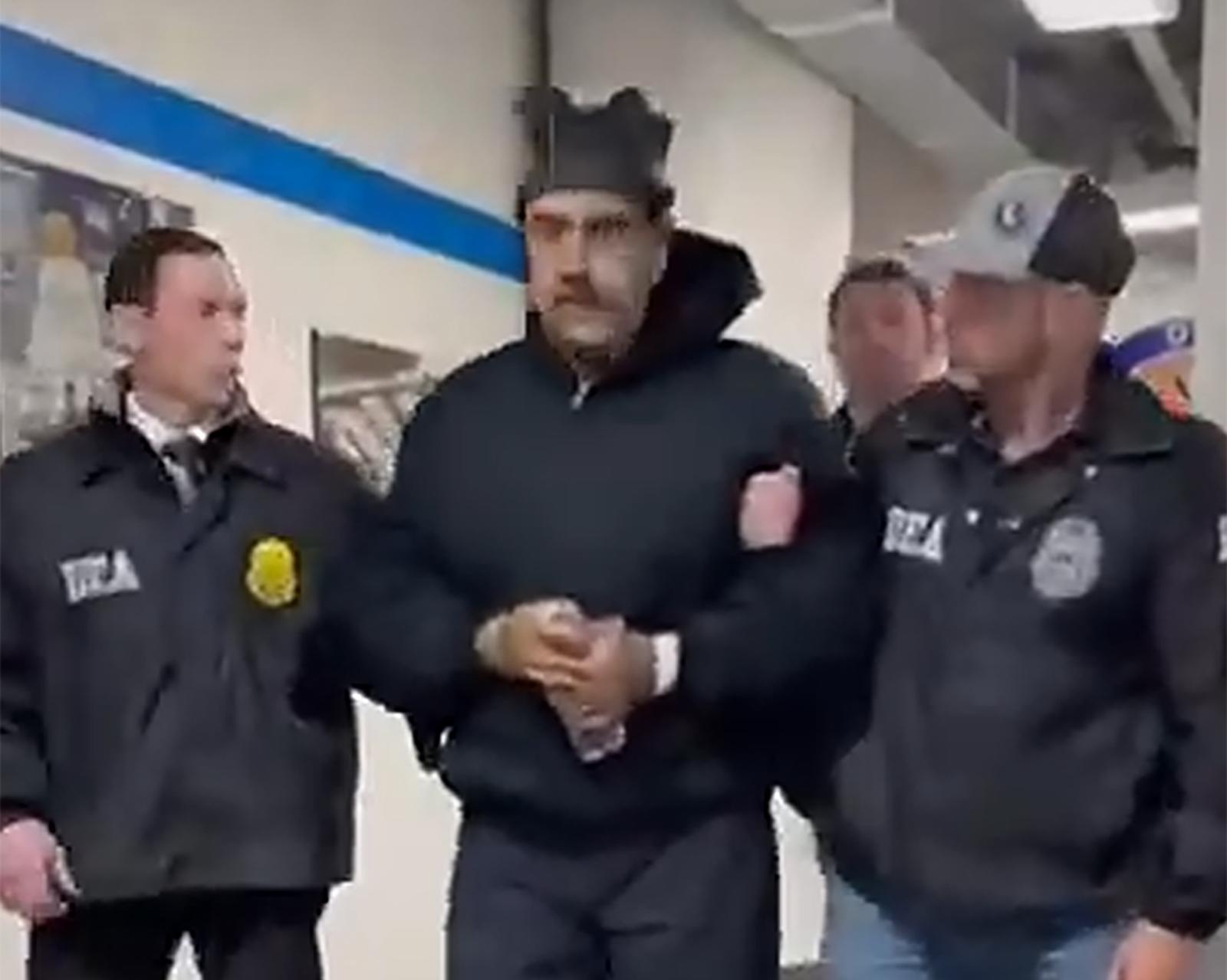 니콜라스 마두로 베네수엘라 대통령이 3일(현지시간) 미국 마약단속국(DEA) 요원에게 이끌려 ‘퍼프 워크’(perp walk·수사기관이 피의자를 언론 카메라에 의도적으로 노출시키는 행위)를 하는 모습이 공개됐다. 백악관 긴급대응 엑스 계정 게시물 캡쳐