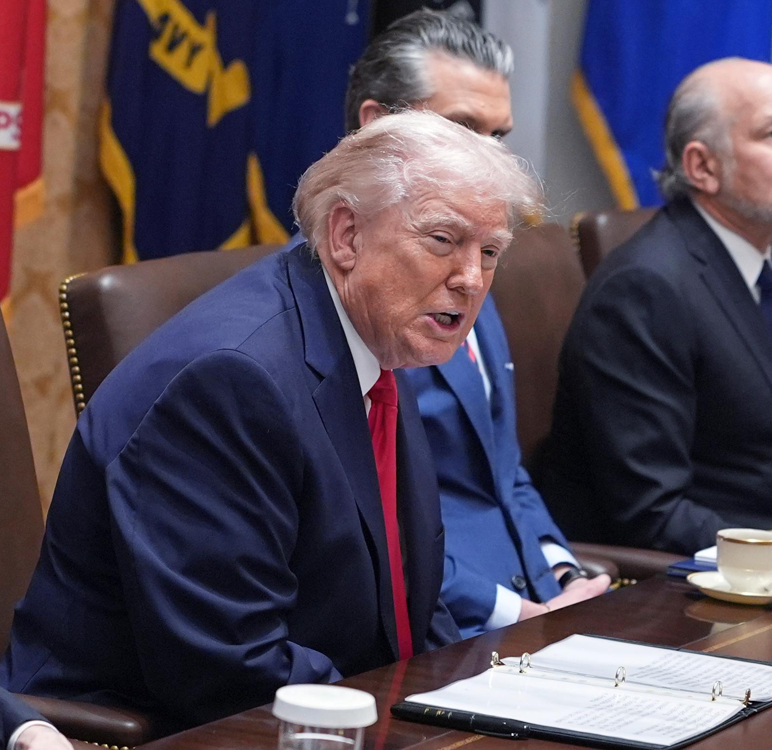 도널드 트럼프 미국 대통령(왼쪽)은 29일(현지 시간) 백악관에서 진행된 내각회의에서 향후 추가 관세 인상에 나설 수 있음을 시사하며 “우리는 지금까지 너무 친절했다”고 주장했다. 워싱턴=AP 뉴시스