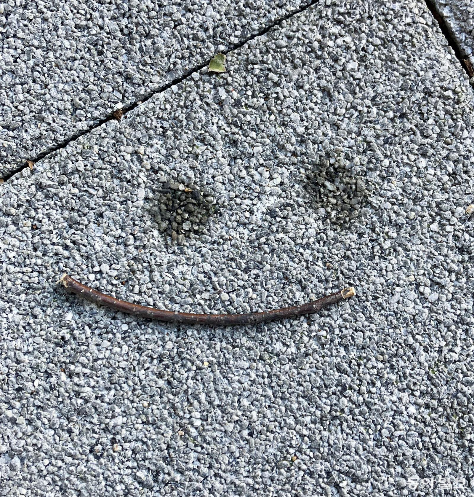 길바닥에 떨어진 윤활유 두 방울. 그 옆으로 가로수 가지가 툭 내려앉으니 빙그레 웃는 얼굴이 만들어졌습니다. 스쳐 지나던 길에도 이렇게 다정한 인사가 숨어 있네요.