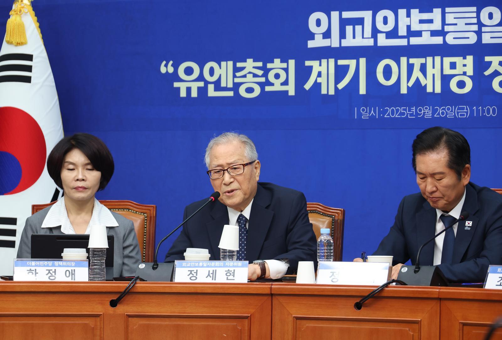 정 전 장관은 이날 국회에서 더불어민주당 주최로 열린 외교안보통일자문회의 세미나에 자문위원으로 참석해 현재의 대통령실 외교안보 라인에 대해 “지금 정부에 이른바 동맹파들이 너무 많다”며 “대통령을 끝장낼 일 있냐”고 지적했다. 이어 “대통령 주변에 소위 자주파가 있으면 앞으로 나간다. 동맹파가 지근거리에 있으면은 아무것도 못 한다”고 했다. 외교관 출신으로 평소 한미 동맹을 강조해 온 위성락 국가안보실장을 겨냥한 것으로 풀이된다.