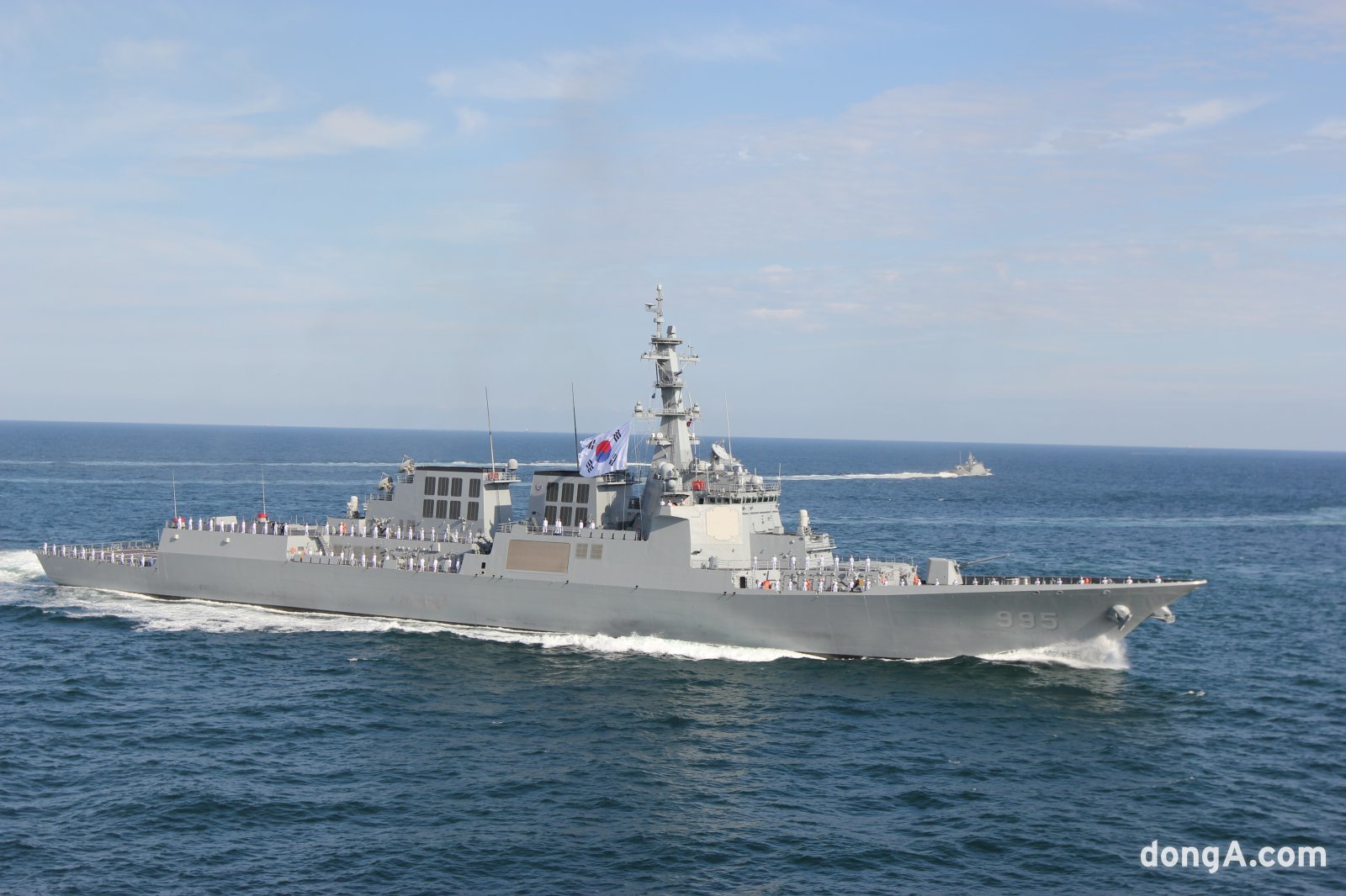 해상사열지휘함 역할을 맡은 최신예 이지스함 정조대왕함. 최재호 기자 cjh1225@donga.com