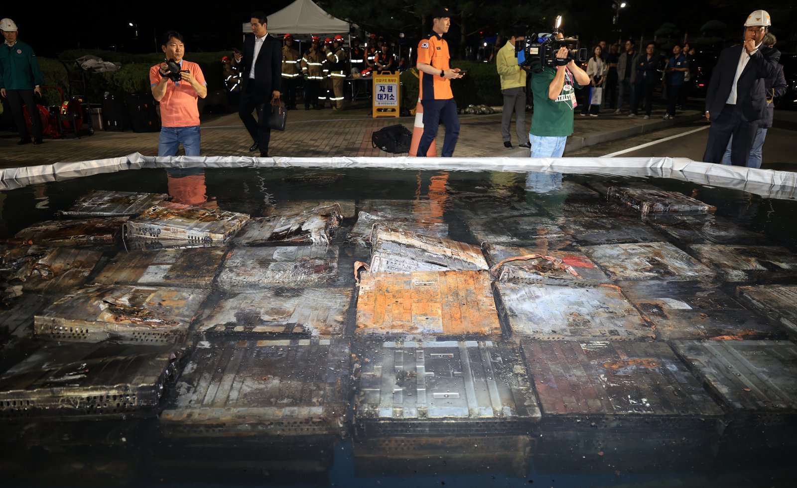 지난 27일 대전 유성구 국가정보자원관리원 화재 현장에 불에 탄 리튬이온 배터리가 소화 수조에 담겨 있다. 2025.9.27/뉴스1 ⓒ News1 김진환 기자