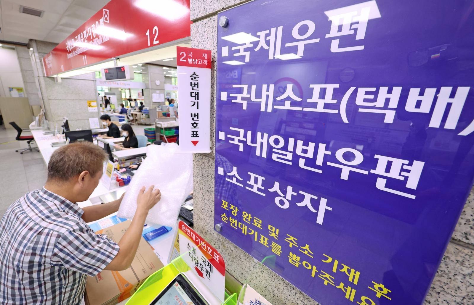 29일 서울 종로구 광화문우체국을 찾은 창구를 통해 우편 업무를 보고 있다. 우정사업본부는 이날 9시부터 국가정보자원관리원 화재로 인해 멈췄던 우편 서비스 일부 업무를 창구 업무를 통해 재개한다고 밝혔다. 2025.9.29 (서울=뉴스1)국가정보자원관리원 화재로 중단된 우편 서비스 대부분이 29일 복구됐다. 편지와 소포, 국제우편 등 우편 서비스가 이날 오전 9시경부터 재개됐다.