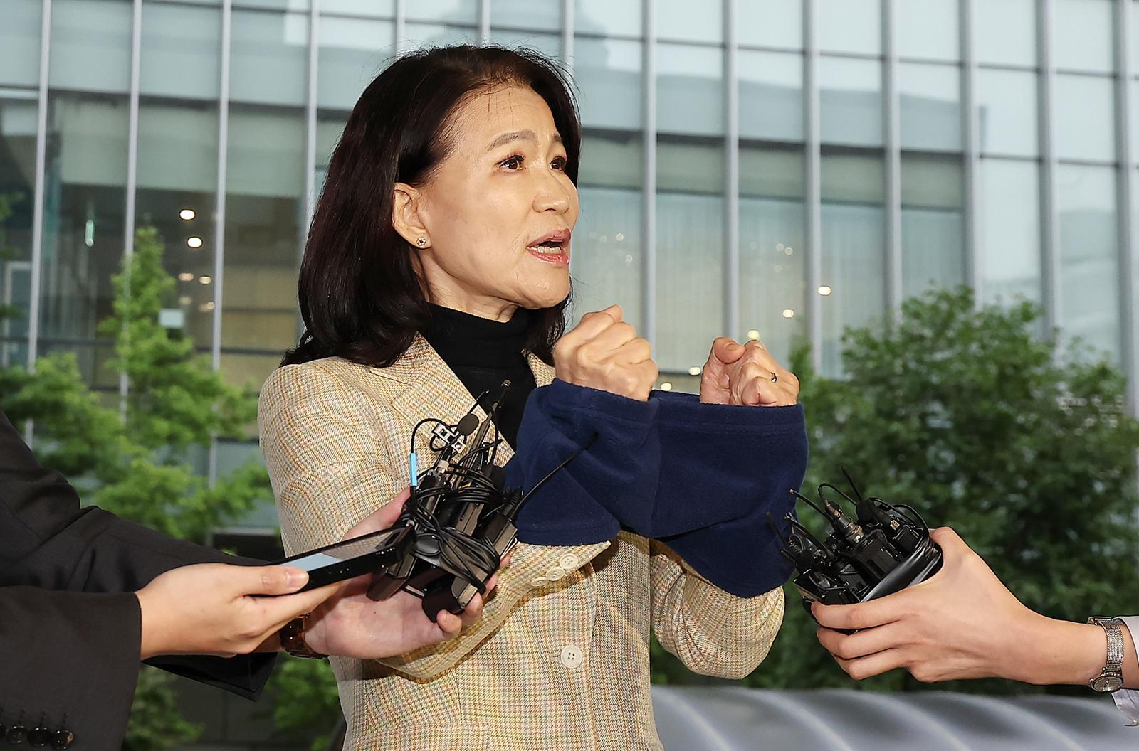 이진숙 전 방송통신위원장이 2일 오후 서울 대치동 자택에서 경찰에게 체포된 뒤 영등포경찰서에서 입장을 밝히고 있다. 경찰은 이날 오후 4시 4분쯤 국가공무원법 및 공직선거법 위반 혐의로 이 전 위원장에 대한 체포영장을 집행했다. 2025.10.2/뉴스1
