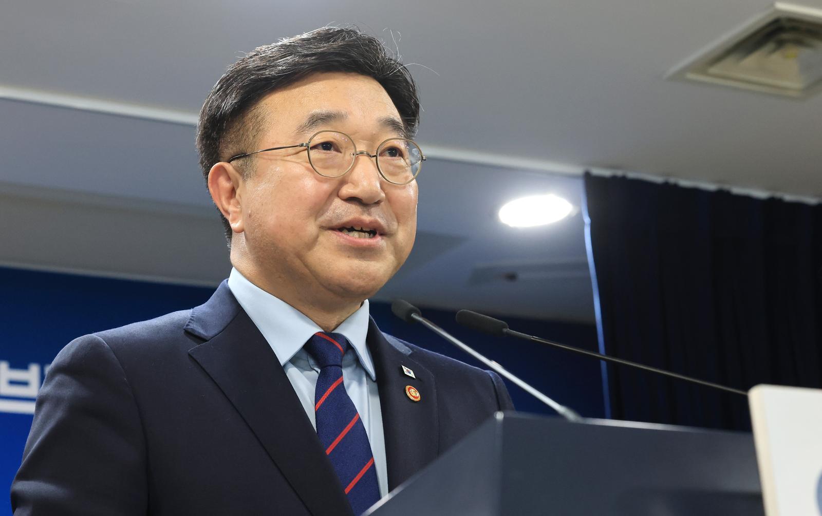 윤호중 행정안전부 장관이 5일 서울 종로구 정부서울청사에서 열린 출입기자단 브리핑에서 발언을 하고 있다. 2025.11.5 뉴스1