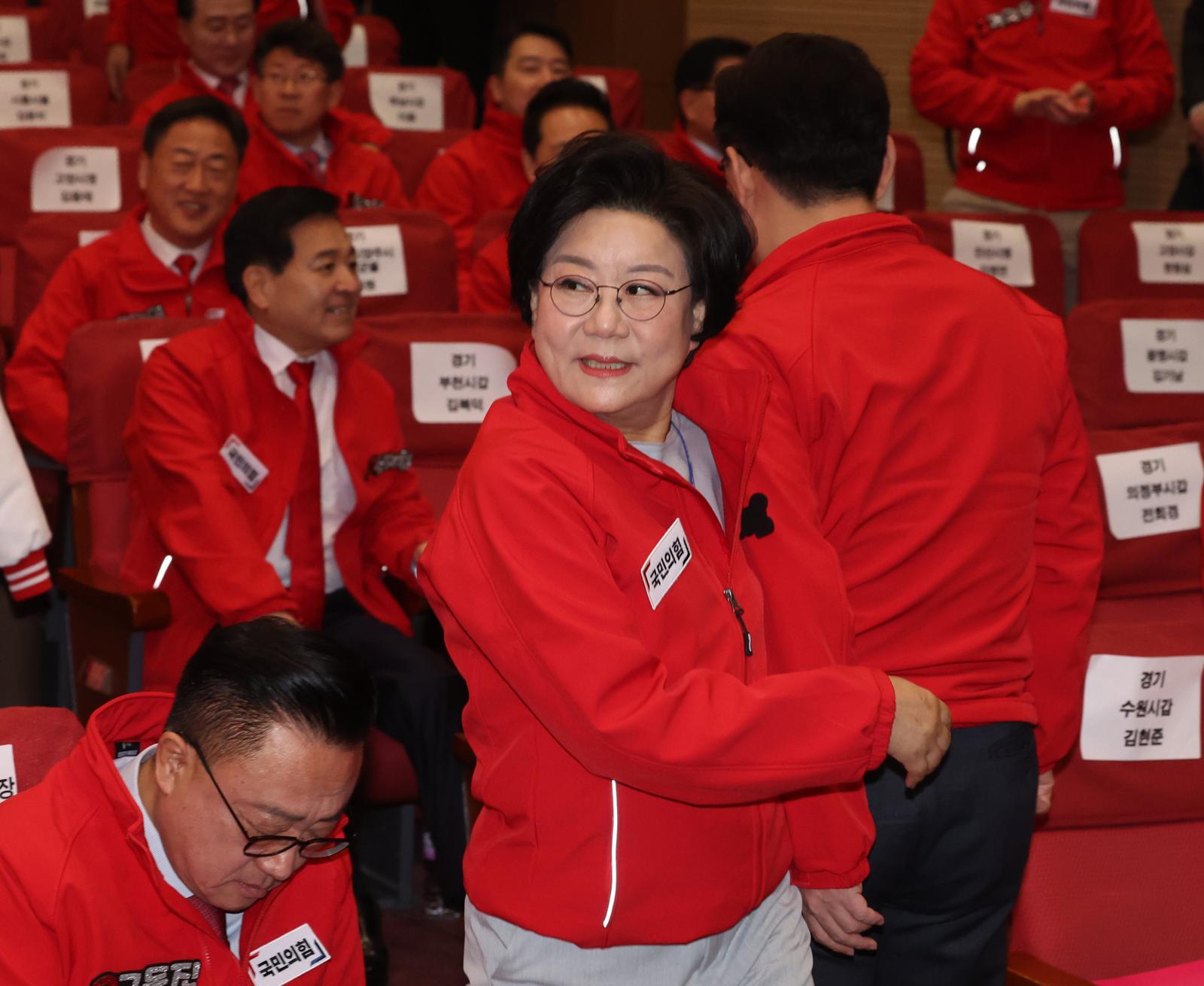 이혜훈 국민의힘 중성동을 후보가 19일 서울 여의도 국회에서 열린 제22대 총선 중앙선대위 발대식 및 공천자대회에 참석하고 있다. 2024.3.19/뉴스1