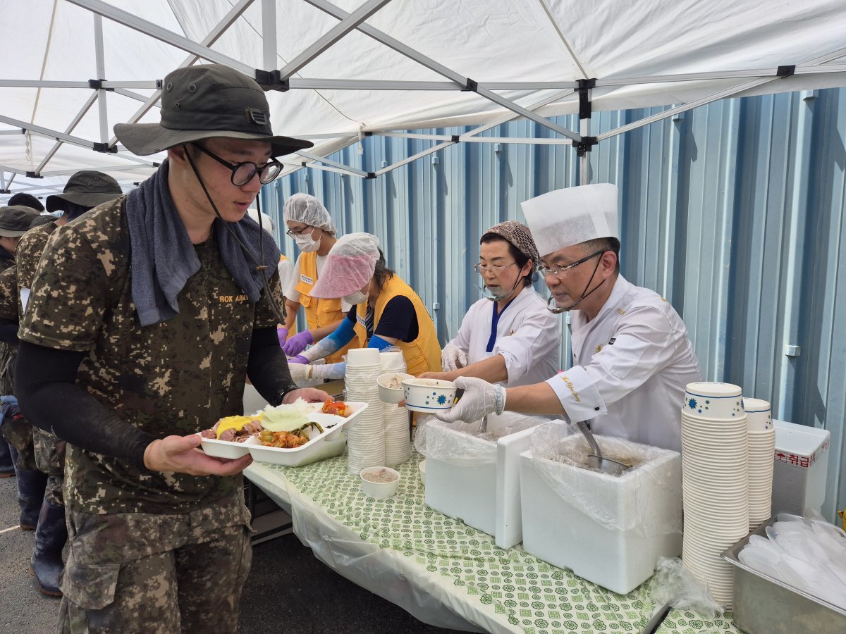전복삼계죽, 갈비찜, 오리훈제볶음 등 총 350인분으로 구성된 식사는 맛과 정성을 더해 복구 작업을 마친 군 장병과 자원봉사자, 주민들에게 큰 호응을 얻었다. 이들은 식사 후 두 셰프에게 감사 인사를 전하며 따뜻한 마음을 나눴다.