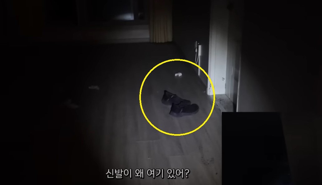 송장벌레 앞에 놓여져 있던 고인의 신발. 유튜버 ‘도사우치’ 영상 캡처