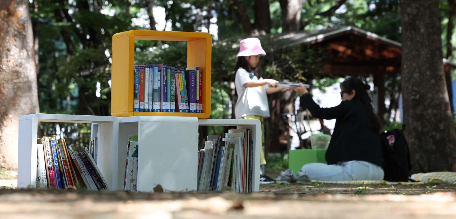 21일 서울 강남구 도산공원에서 ‘가족숲속도서관’ 행사가 열려 야외 팝업 도서관이 운영되고 있다. 서울특별시교육청 강남도서관(관장 현희정)은 2025년 서울시교육청 독서 캠페인 북웨이브의 일환으로 20일부터 23일까지 ‘가족숲속도서관’ 행사를 운영하며 야외 팝업 도서관, 비즈 책갈피 만들기, 책 할머니와 동화 읽기, 창의 블록 ‘폴리곤즈’ 만들기 등 각종 체험 및 이벤트에 참여할 수 있다. 2025.09.21 뉴시스