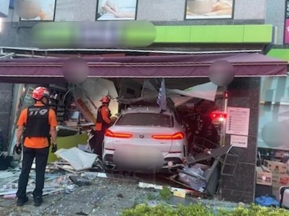 22일 오전 6시 6분쯤 부산 해운대구 재송동 한 교차로에서 SUV가 편의점으로 돌진하는 사고가 발생했다.
