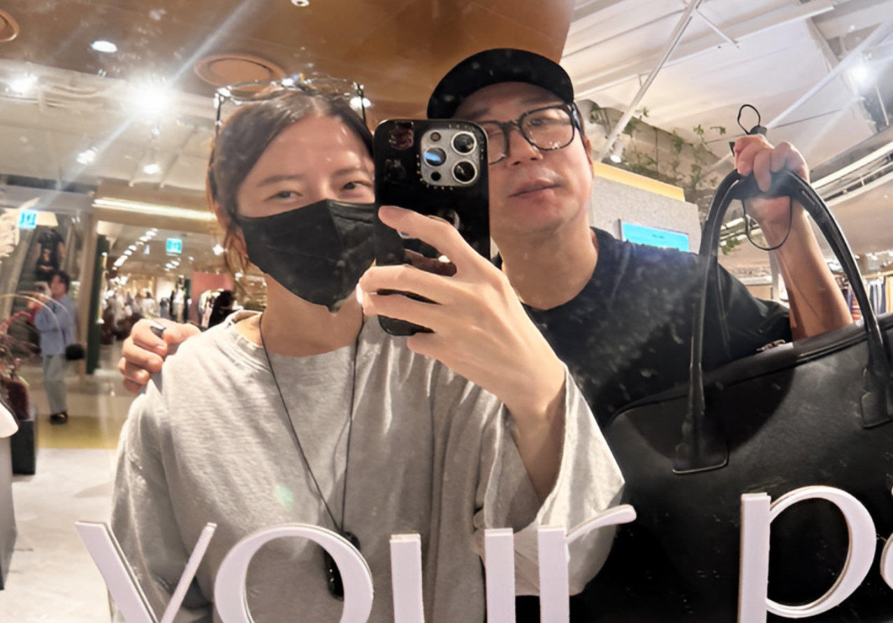 사진 속 두 사람은 백화점에서 쇼핑한 가방을 들고 미소 지으며 나란히 서 있었다.