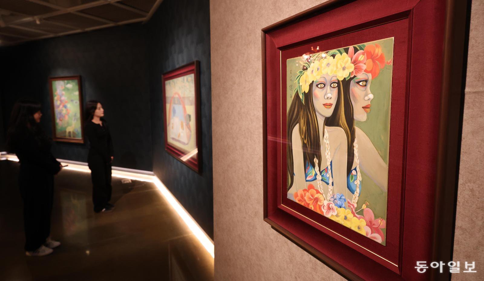 23일 서울 종로구 석파정 서울미술관 천경자 작고 10주기 특별기획전 ‘내 슬픈 전설의 101페이지’ 전시회장에서 관람객들이 작품을 보고 있다. 이 전시는 천경자 작가 생애 마지막 전시 ‘내 생애 아름다운 82페이지’ 이후 최대 규모 기획으로, 작가의 대표 채색화 80여 점이 집대성돼 내년 1월 25일까지 이어진다.