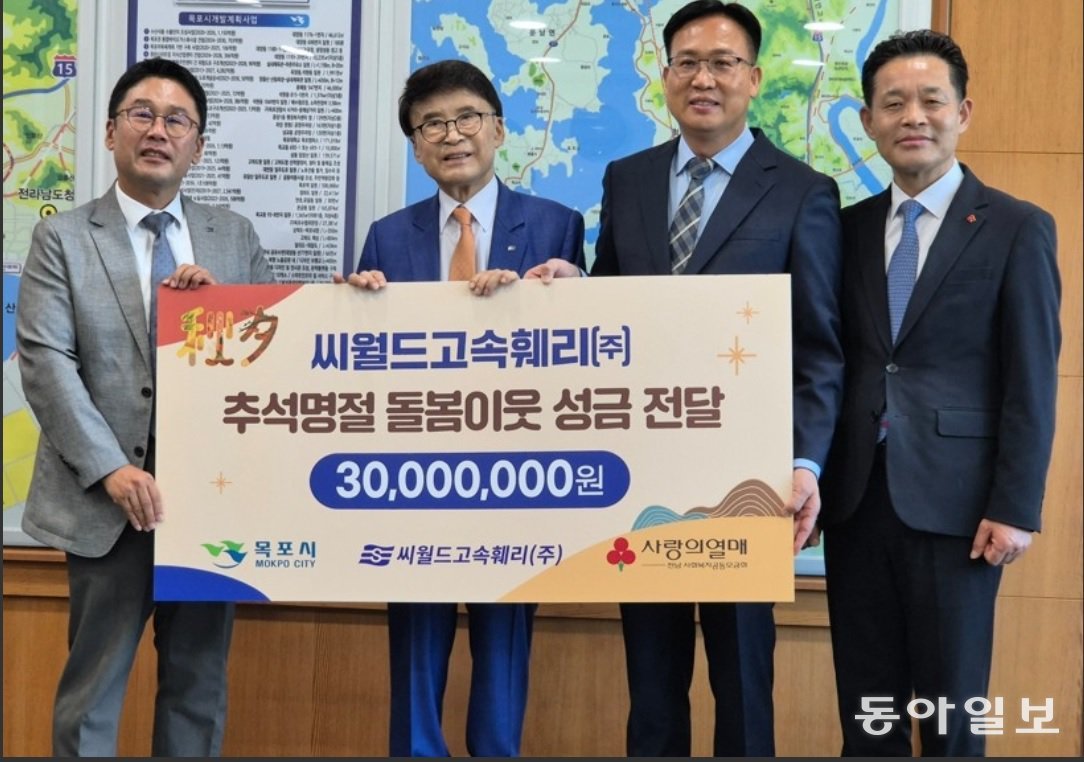 조석훈 목포시장 권한대행은 “경기 침체와 물가 상승으로 힘든 시기임에도 꾸준한 사회공헌 활동을 이어가는 씨월드고속훼리에 감사드린다”며 “기탁된 성금은 어려운 이웃에게 큰 힘이 될 것”이라고 말했다.