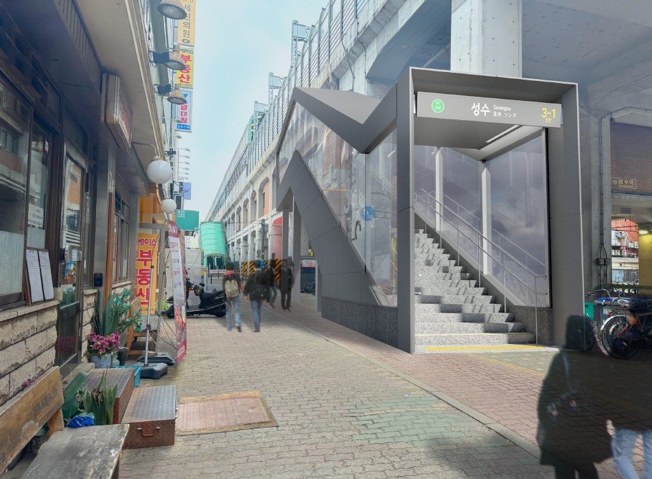 신생기업 본사, 각종 팝업 스토어, 외국인 관광객 증가 등으로 증가한 성수역의 수송 수요가 3번 출입구에 집중되어 있다는 상황을 반영해 3번 출입구 전면에 우선적으로 계단을 추가 신설하기로 결정했다.