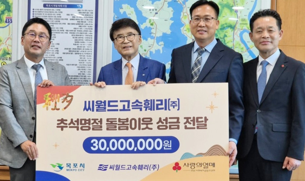 조석훈 목포시장 권한대행은 “경기 침체와 물가 상승으로 힘든 시기임에도 꾸준한 사회공헌 활동을 이어가는 씨월드고속훼리에 감사드린다”며 “기탁된 성금은 어려운 이웃에게 큰 힘이 될 것”이라고 말했다.