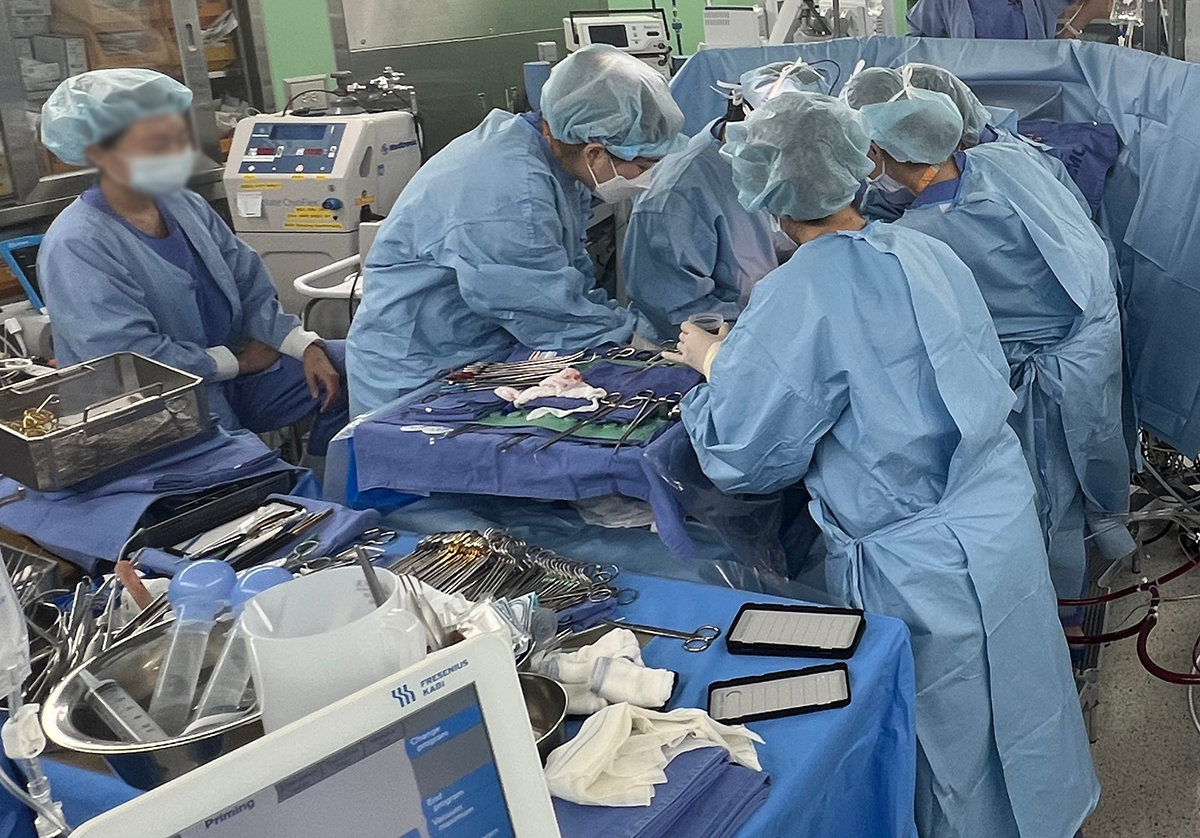 서울의 한 대학병원에서 의료진이 심장 수술을 진행하고 있다. 흉부외과는 생명과 직결된 큰 수술이 많아 전문의, 전공의, 간호사 등 많은 인력이 투입된다. 대한심장혈관흉부외과학회 제공