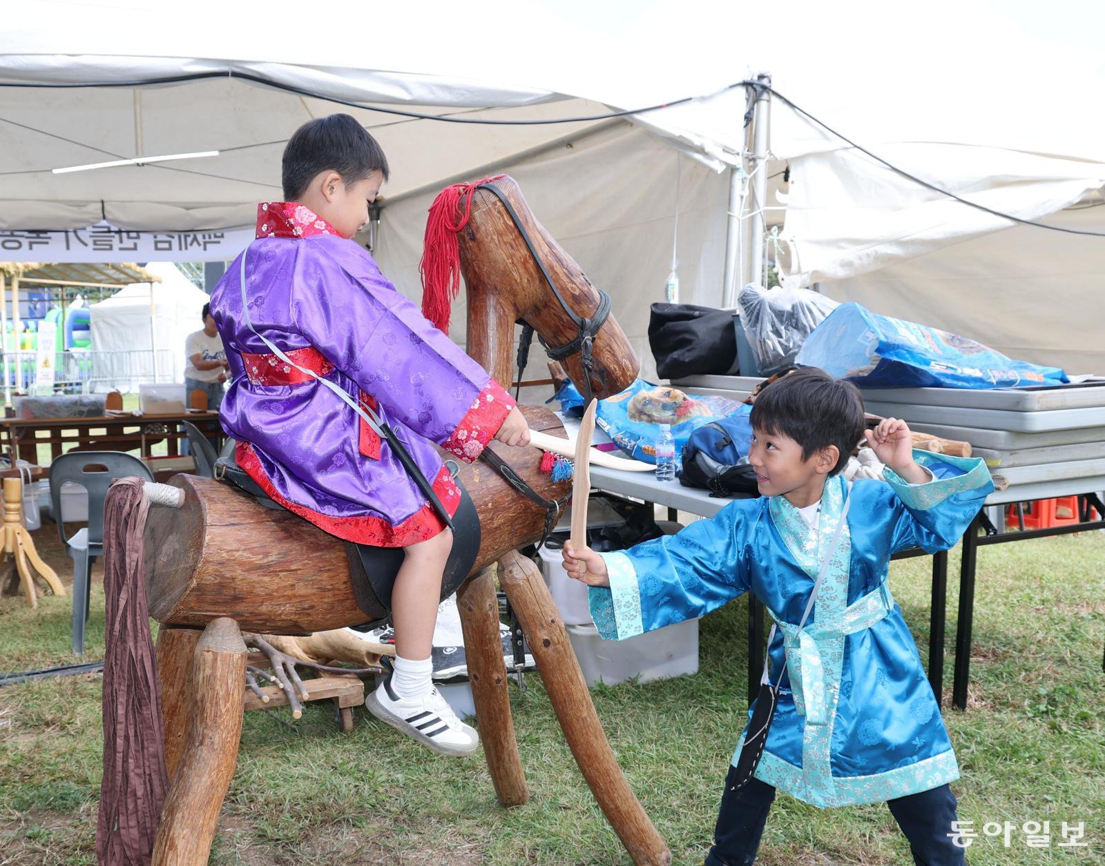 어린이 관람객들이 백제검 목공 체험을 하며 즐거워하고 있다. 신원건 기자 laputa@donga.com