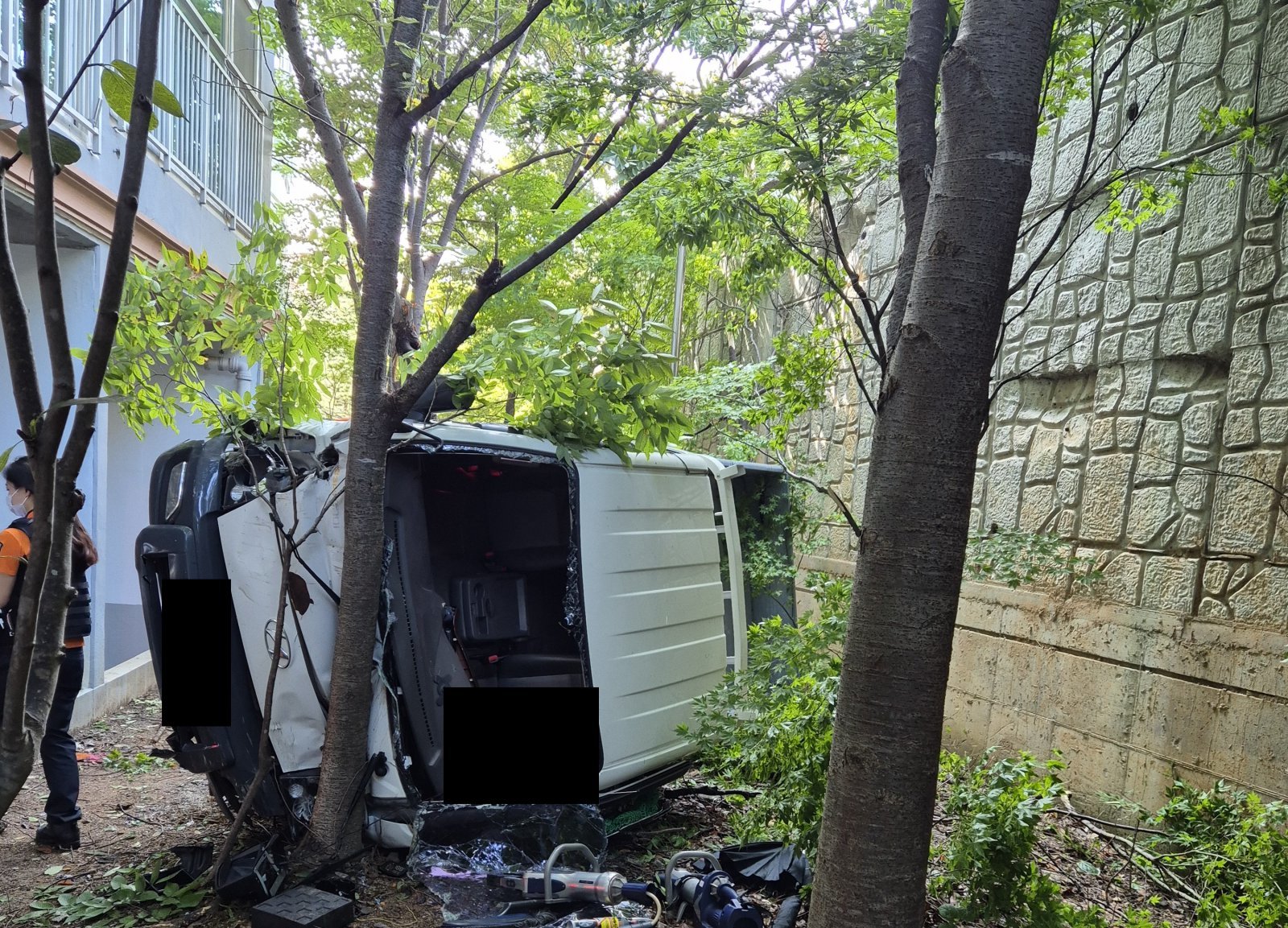 공주 유구아파트 뒷길서 1t 트럭 옹벽 아래로 추락…2명 중상