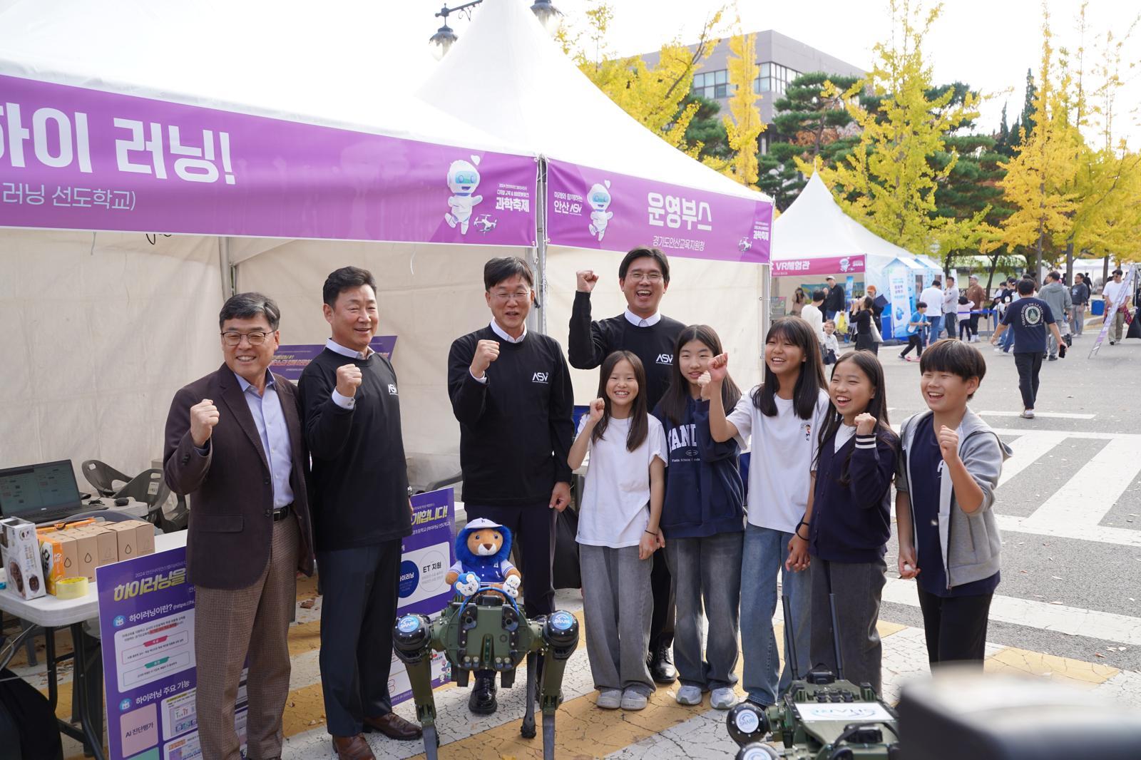 백동현 한양대 에리카 부총장(가운데 오른쪽)과 이민근 안산시장(가운데 왼쪽)이 제3회 88로봇위크 행사를 돌아보며 어린이들과 기념사진을 찍고 있다. 한양대 ERICA 제공