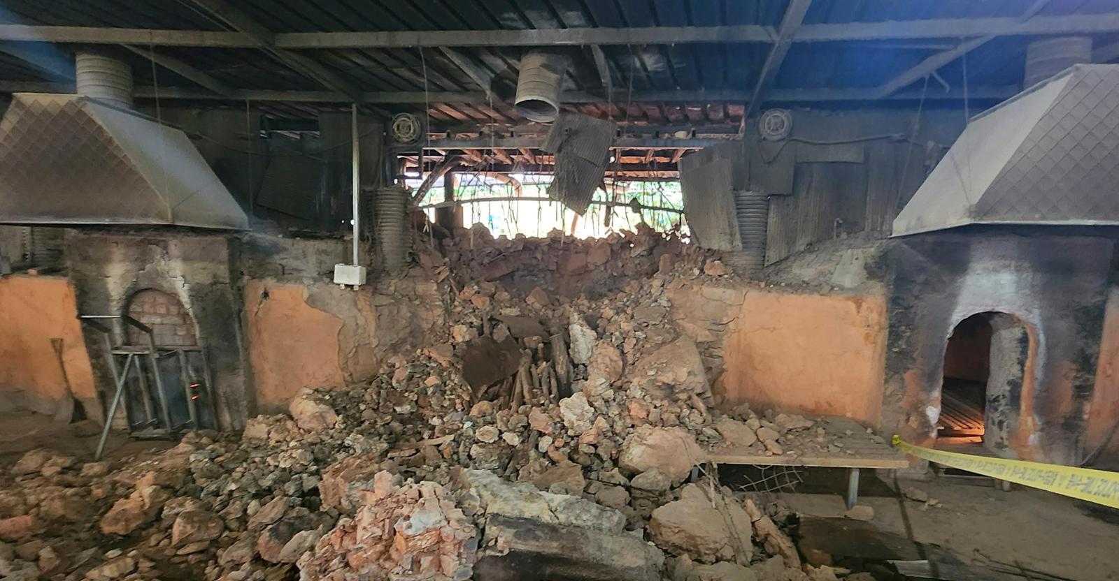 27일 오전 경기 양주시 장흥면의 한 숯가마 찜질방 내부에서 액화석유가스(LPG)가 폭발해 실내가 무너져 있다. 폭발 사고로 3명이 중상을 입는 등 28명이 다쳤고, 손님 72명이 긴급 대피했다. 경찰과 소방은 직원이 LP가스통에 연결된 토치형 라이터로 장작을 태우다 폭발한 것으로 보고 정확한 원인을 파악하고 있다. 경기북부소방재난본부 제공