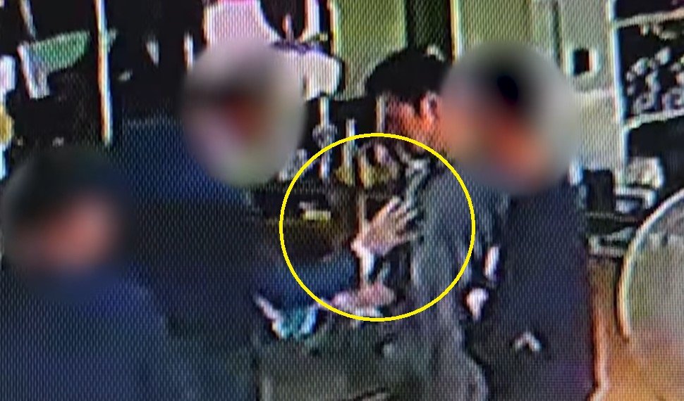 집행관이 양치승 씨의 가슴을 만져보는 CCTV 장면. 양치승 씨 유튜브 캡처