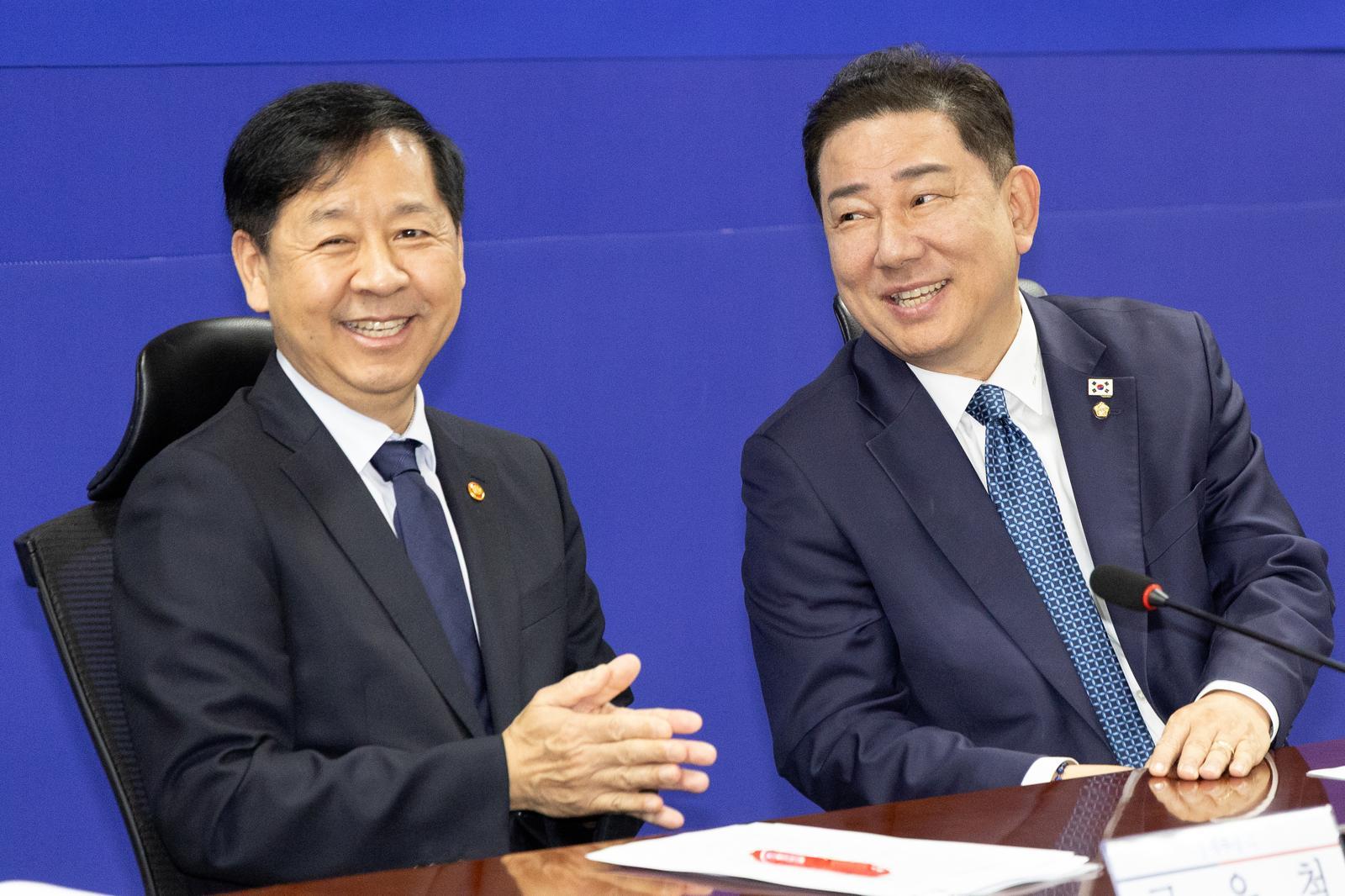 김병기 더불어민주당 원내대표와 구윤철 경제부총리 겸 기획재정부 장관이 30일 서울 여의도 국회에서 열린 ‘경제형벌 민사책임 합리화 당정협의’에서 대화하고 있다. 2025.9.30/뉴스1