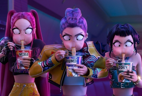 넷플릭스 오리지널 애니메이션 ‘케이팝 데몬 헌터스’의 주인공들이 한국 음식을 먹고 있다. (출처=AP/뉴시스)‘케이팝 데몬 헌터스’는 지난여름 넷플릭스에 공개돼 플랫폼 사상 최대 흥행을 기록한 애니메이션 영화다. 작중 주요 등장인물은 한국인으로, 김밥·어묵·컵라면 등의 한국 음식을 즐겨 먹는다.