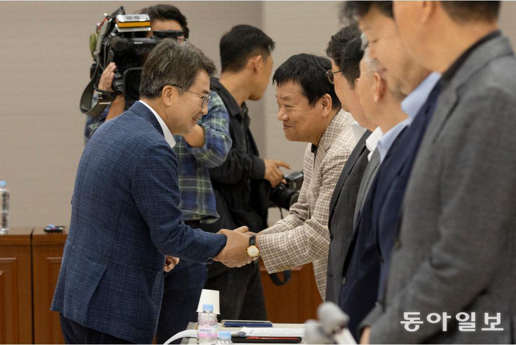 김동연 경기도지사가 1일 새벽 경기지방노동위원회에서 열린 경기도 버스 노사 협상장을 찾아 노조 측 관계자들과 인사를 하고 있다. 경기도 제공김 지사는 “교통 여건이 더 좋아지도록 함께 노력했으면 좋겠다”라며 “합의 내용이 빛나도록 근무 여건과 경영 여건을 개선하고 약속한 내용을 다 지킬 수 있도록 적극적으로 지원하겠다”라고 약속했다.