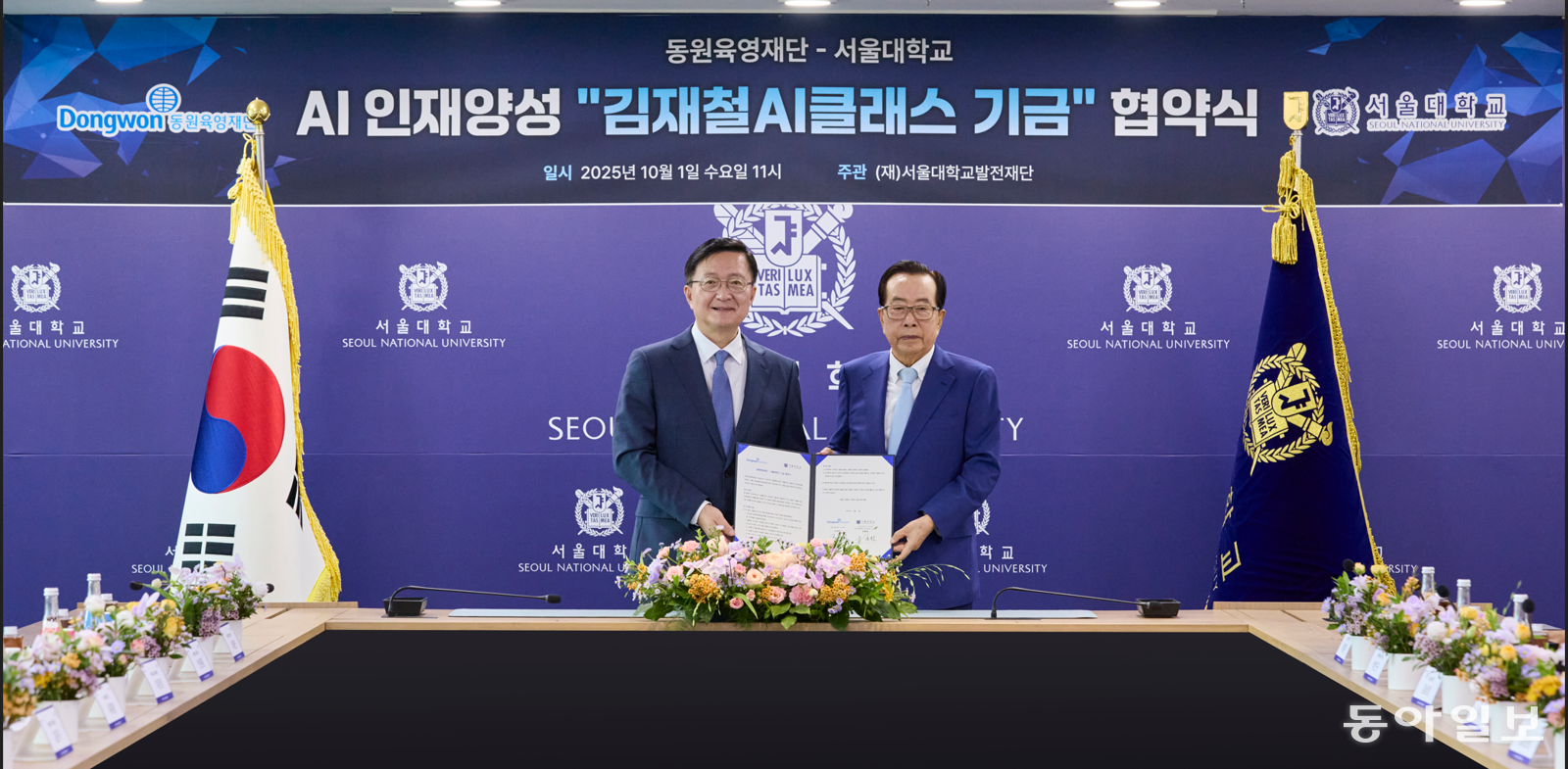 서울대는 1일 동원육영재단과 ‘김재철 AI 클래스 기금 협약’을 체결하고, 김 명예회장이 총 250억 원을 지원하기로 했다고 밝혔다. 기부금은 2026년부터 매년 선발되는 학부생 30명에게 전액 장학금을 지급하고, 글로벌 연구 교류와 산학 인턴십, 창업 지원 등에도 활용된다.